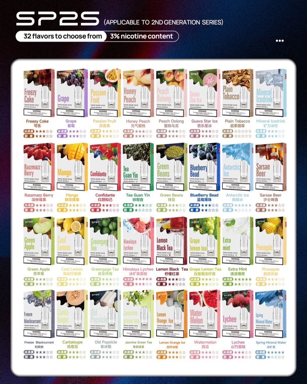 SP2S煙彈提供多種口味選擇,從經典的煙草味、清爽的薄荷味到各種水果風味。